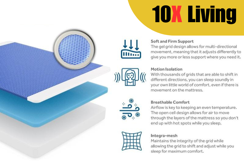 The 10X Gel Grid combines science, luxury and technology in a futuristic layer designed to contour your body and bring you healthy, restorative sleep!